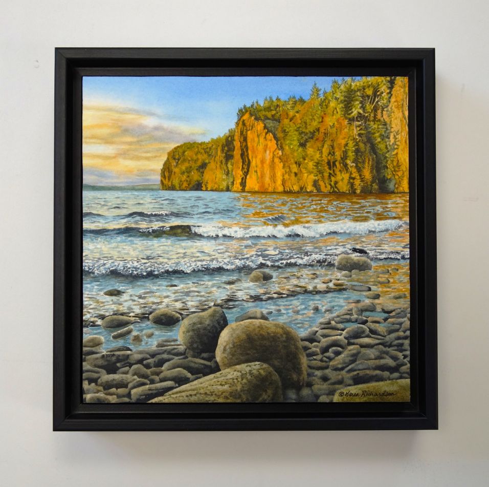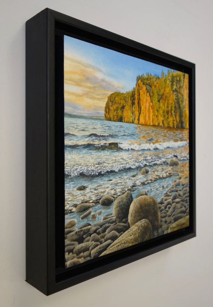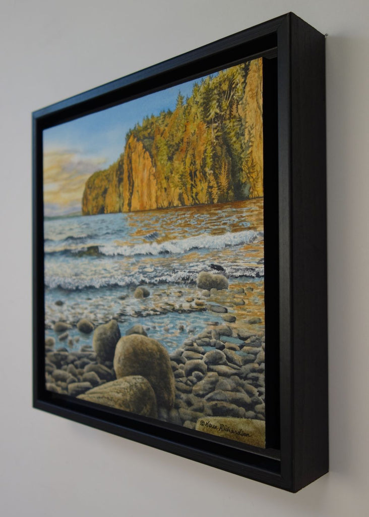 "This fall, we camped for ten days in Bon Echo Provincial Park. I had heard of its remarkable feature - a magnificent cliff over the lake - but seeing it in person was simply breathtaking. In this painting, I hope to convey the magic of this stunning landscape."