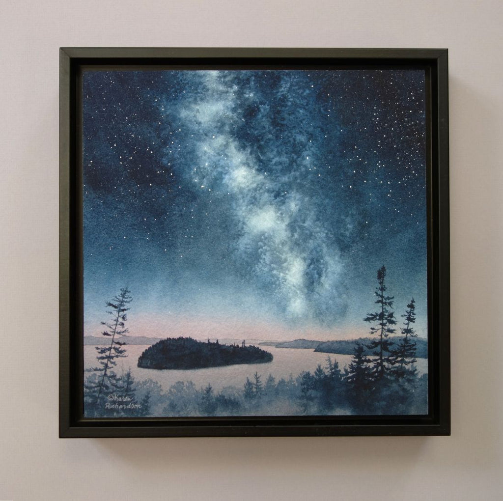 "Every summer we explore the Ontario shore of Lake Superior and each visit to this vast inland sea feels like coming home. In this painting, I imagined how the lake vista viewed from Rossport would appear after sunset, and under the Milky Way."